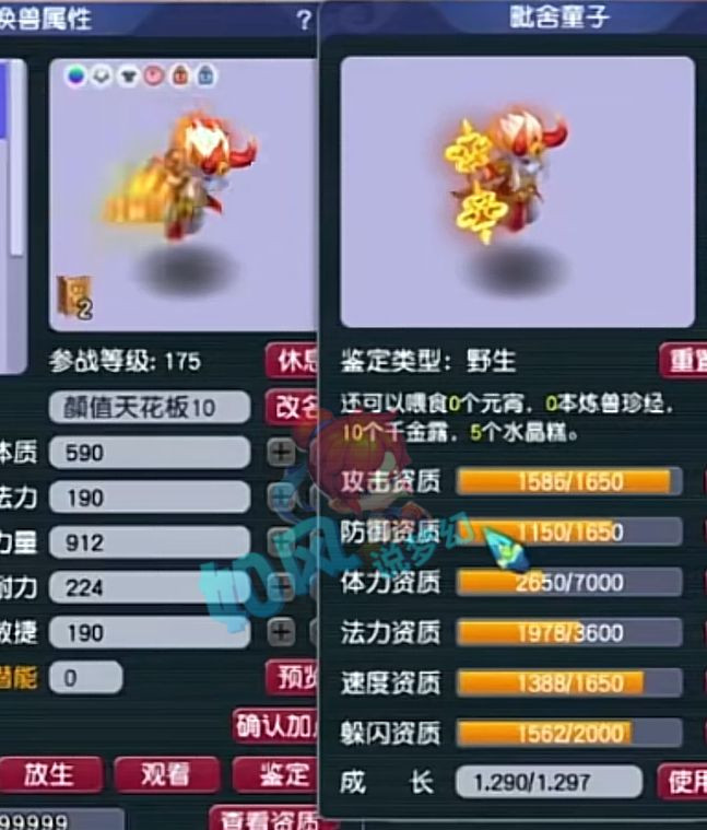 不过就在F哥准备给这个宝宝进阶110时,突然发现这个宝宝居然是野生了,花了5000给一个野生童子打书,书钱比成品还要贵,真的是一把晕死!